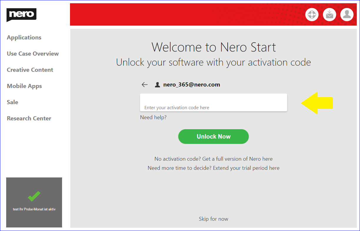 How do I redeem an activation code in Nero Start?