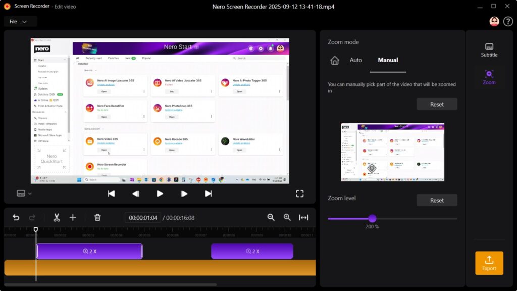 If you are already a Nero Screen Recorder subscriber, simply update to Nero Screen Recorder 2026 to start using Auto Zoom today.