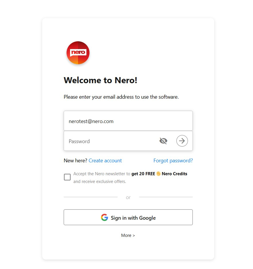 - Sign in the Nero Account where you want to add the product (or create an account).