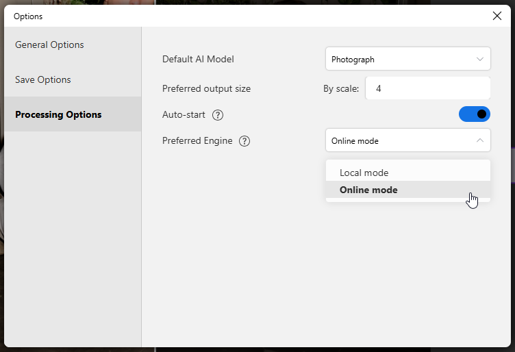 The Cloud process uses Nero’s remote AI engine integrated within the AI Image Upscaler (Windows Desktop App) to handle image processing tasks.