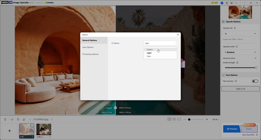 We’ve added full support for Light Mode and Dark Mode, giving you the flexibility to choose the interface style that best fits your environment and personal preference. Whether you’re working in a bright studio or a dim editing room, Nero AI Image Upscaler now adapts seamlessly for a more comfortable experience.